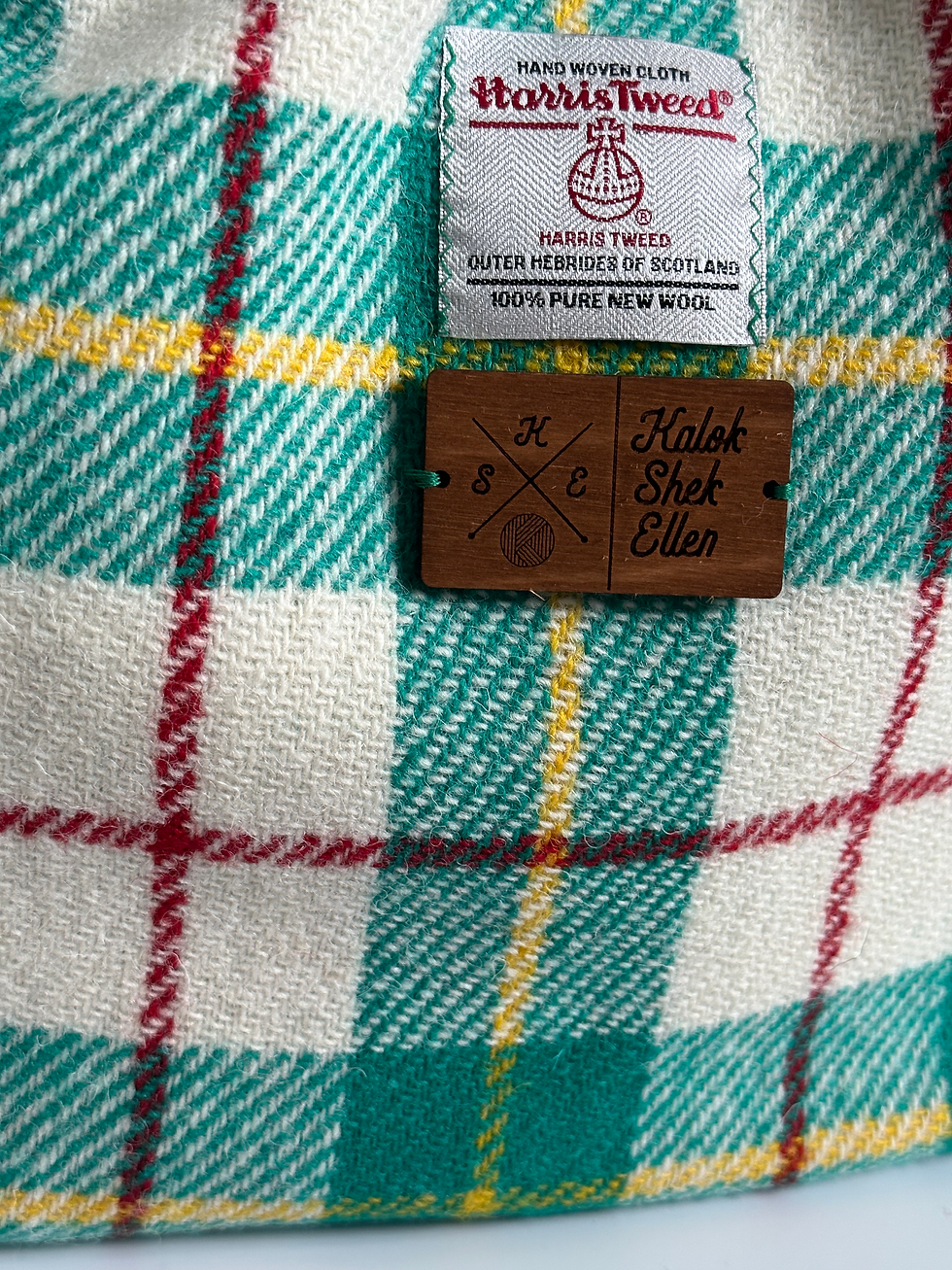 Harris Tweed Aqua + White Plaid